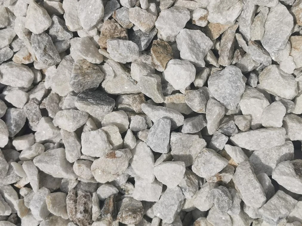 It is a natural marble-limestone grit with a white color, gray streaks and shimmering crystals. It is valued for its elegant, sparkling appearance in sunlight, making it ideal for gardens and outdoor arrangements.