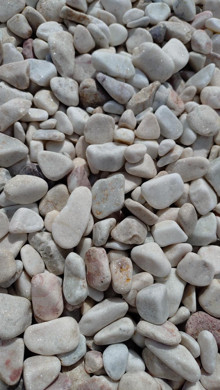 Often described as white variegated Janowice pebbles or pastel Janowice pebbles, this is a natural rounded decorative stone produced from a multicolored variety of dolomite (dolomitic marble). Unlike the more uniform “standard” Janowice stone, this version stands out thanks to its visible natural color variations. The overall tone is white with soft pastel shades.