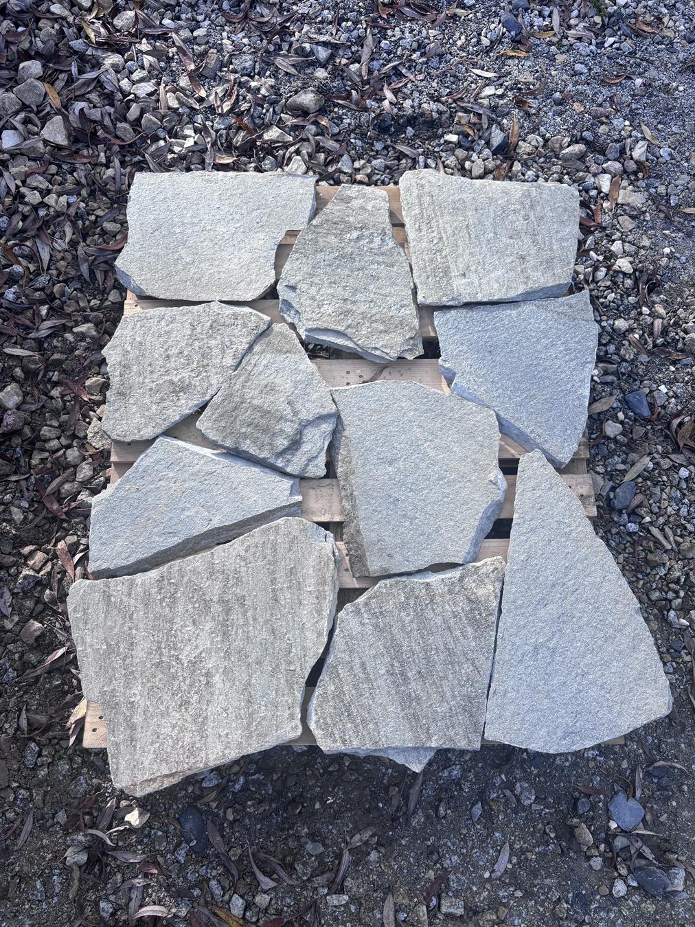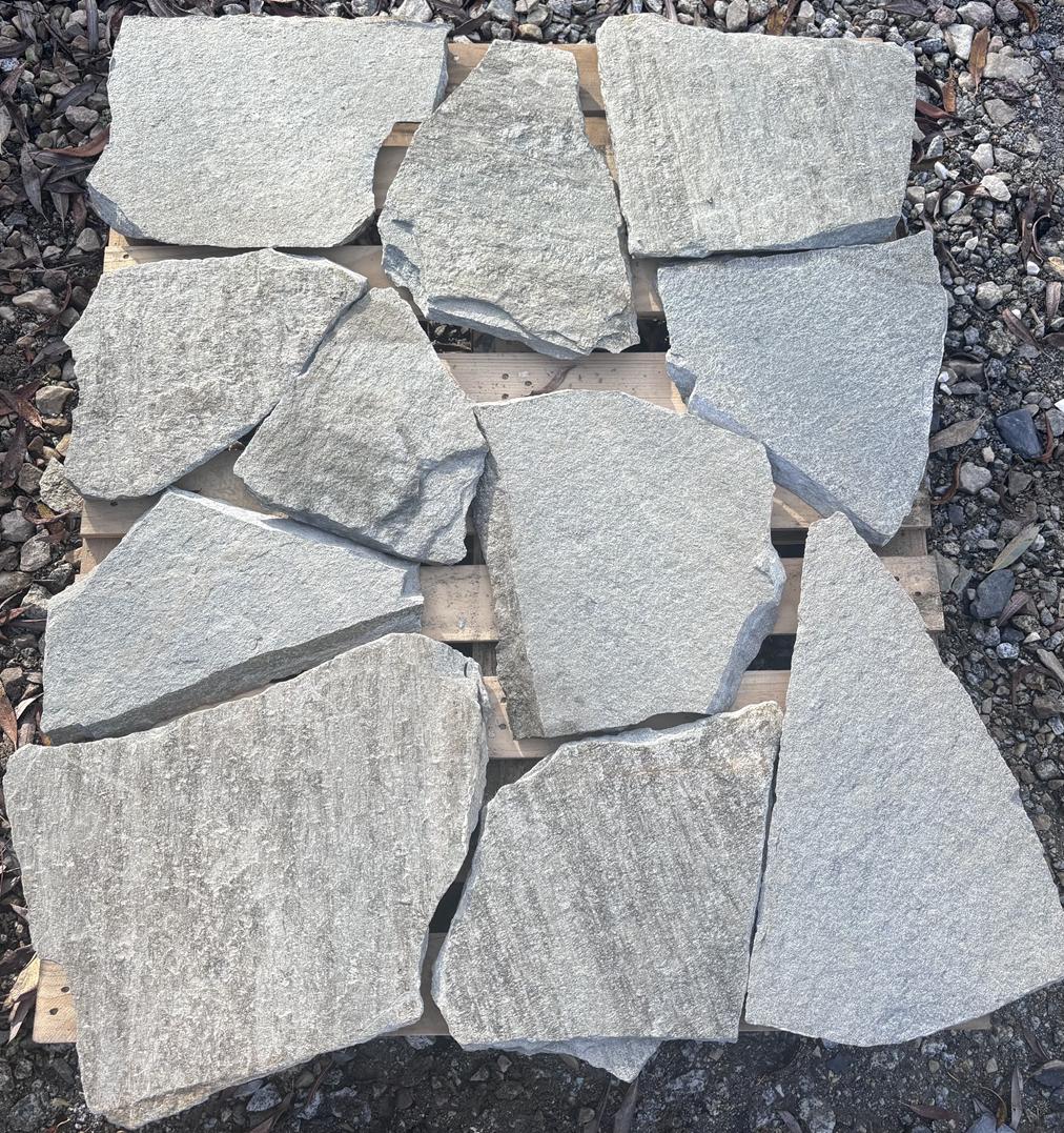 - Material type — natural facade stone, hand-cut, polygonal (irregular shapes)