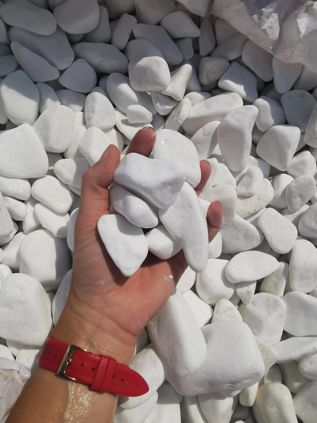 Snow-white Thassos is the whitest stone in the world and the most prestigious natural decorative pebble on the market. It is sourced from the purest marble deposits on the Greek island of Thassos (Aegean Sea) – the same raw material used to produce the most expensive white marbles in the world (Thassos Snow White Marble).
